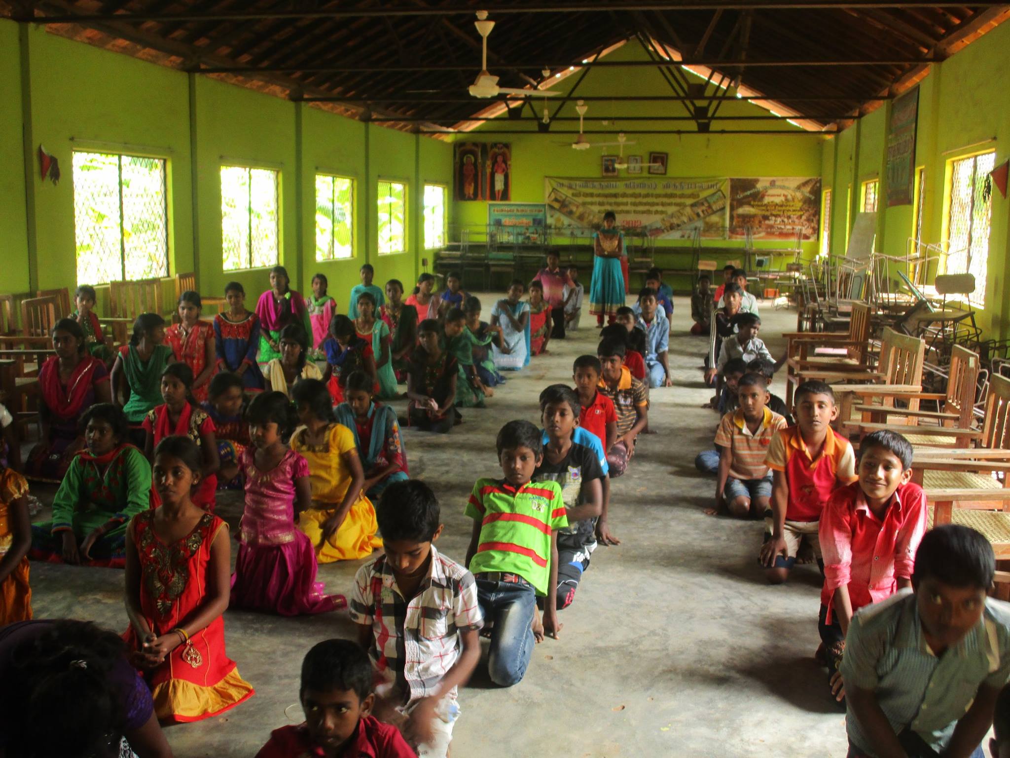 Following the event of providing learning equipment to the students, the improvement of moral schools held in Tharanikulam and surrounding villages was examined and yogasana meditation training class was held for the participating students by yogasana professor Sodhimoorthy and the event ended happily.