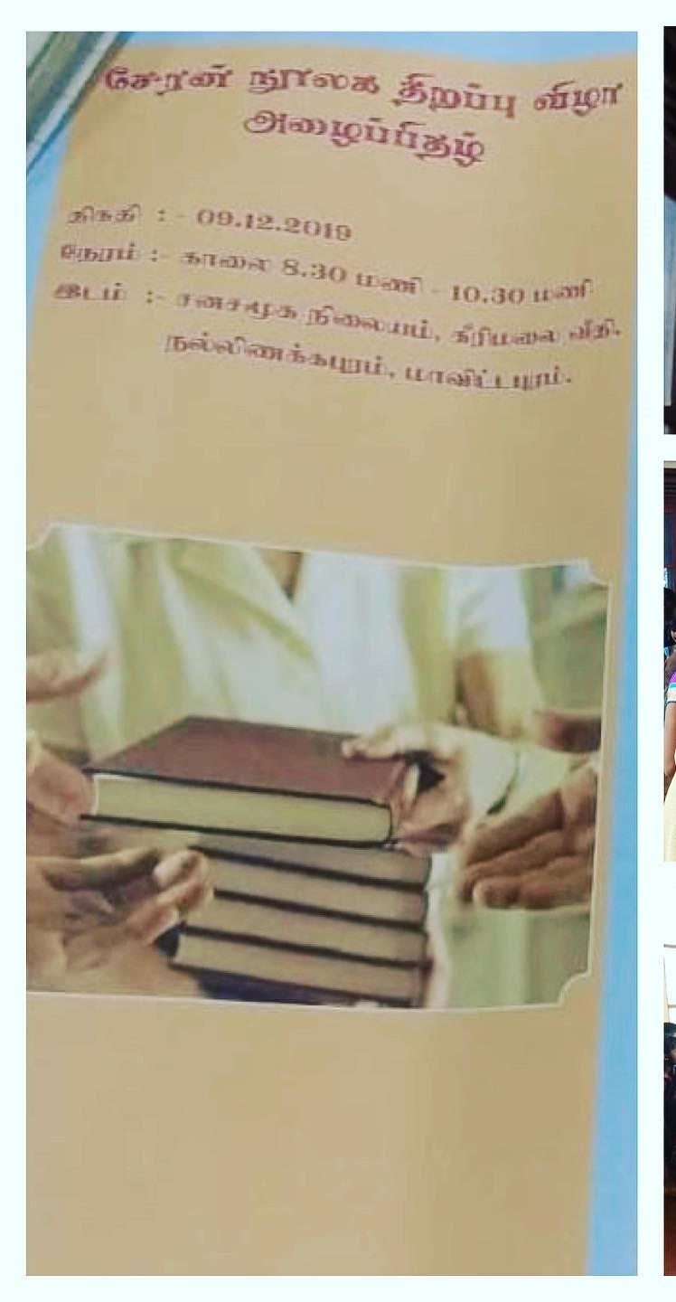 யாழ் மாவட்டம் மாவீட்டபுரம் நல்லிணக்க புரத்தில் பல்கலைக்கழக மாணவி.ப. லக்சனாவினால் அவரது செயற்றிட்டத்திற்காக நூலகத்தினை உருவாக்கும் நோக்கில் பிரதேச.செயலகத்தினூடாக விது நம்பிக்கை நிதியத்தினை அனுகி எமது வழிகாட்டலின் கீழ் சமய கலாச்சார கல்வி அறிவியல் ஆன்மீகம் சார் நூர்களல் சேகரிக்கப்பட்டு சேரன் என நூலகத்திற்கு பெயரிடப்பட்டு சம்பிரதாய பூர்வமாக திறந்து வைக்கப்பட்டது